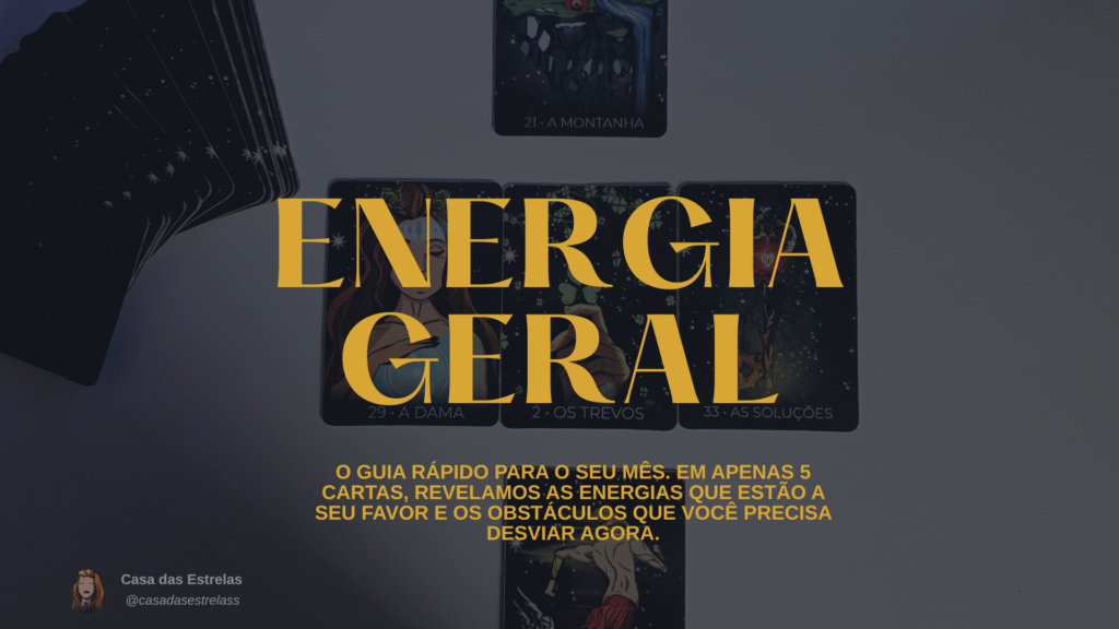 nem sempre precisamos investigar a vida inteira. Às vezes, tudo o que precisamos é saber: “Onde estou pisando este mês?”. A Tiragem de Energia Geral foi desenhada exatamente para isso.